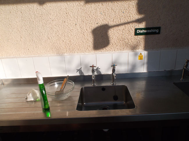 | All the campgrounds had multi-sink setups for dishwashing. Our shared "one bowl" (plus two cups and three spoons) meal system made for easy clean-up. The campgrounds also had (usually) well-thought-out places to empty the portable toilet. | ![]() |